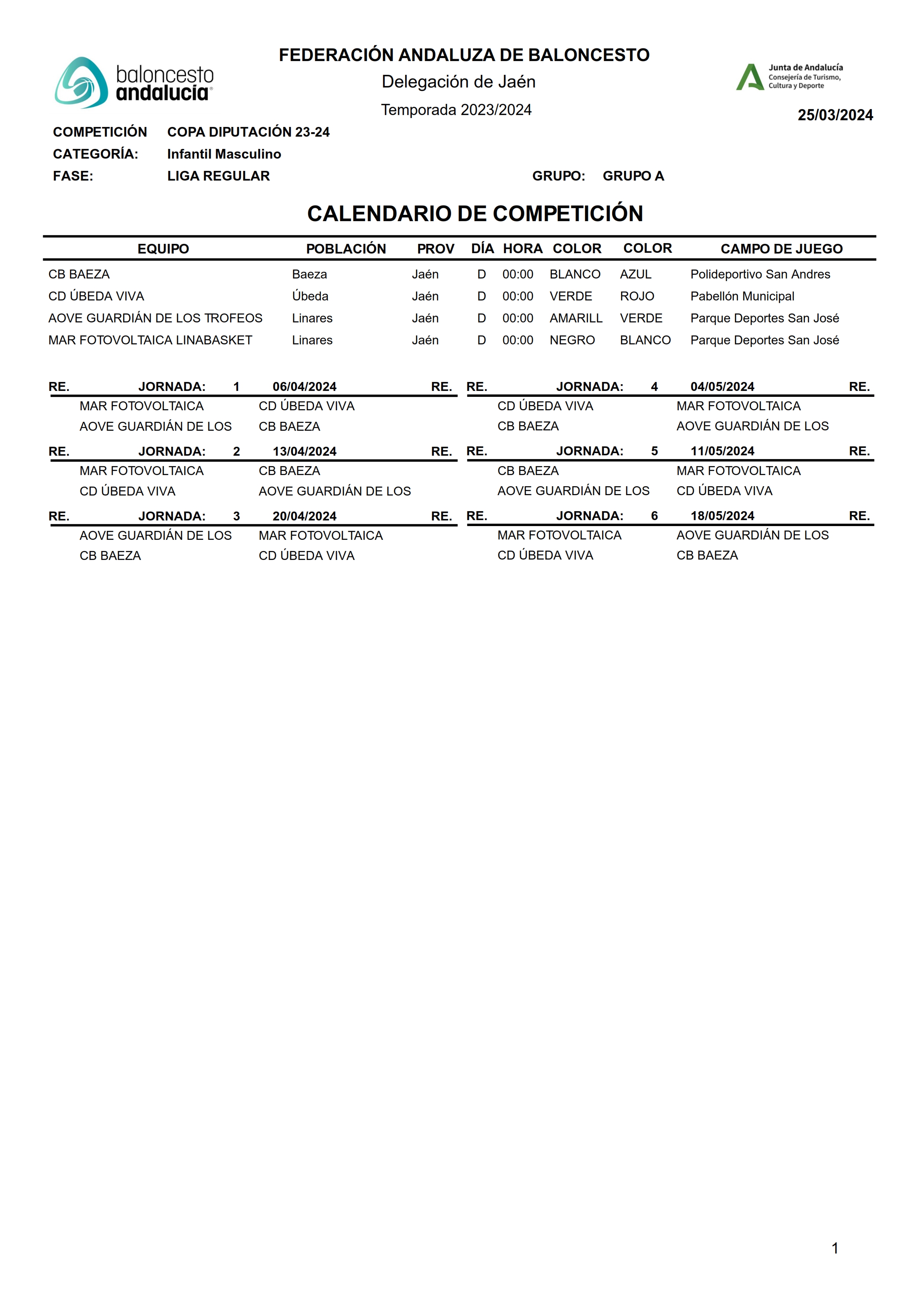 Nuestro club participará en la categoría féminas con el equipo senior y el junior Mirador de María Rosa CAB Linares, el cadete y el infantil femenino Dental Company CAB Linares, el cadete masculino Linkasa CAB Linares y el infantil masculino AOVE Guardián de los Trofeos CAB Linares.