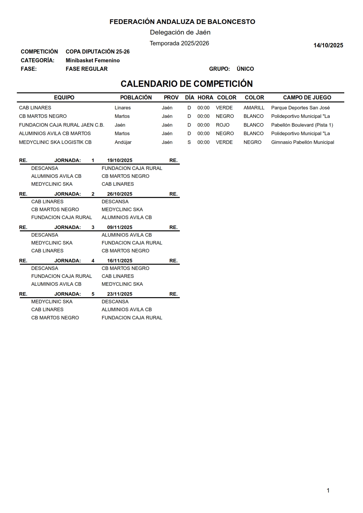 Calendario Copa Diputación Minibasket Femenino 2025/2026 webmaster Categoría: Calendarios 2025/2026 14 Octubre 2025 Visitas: 324 Facebook X Anterior Siguiente
