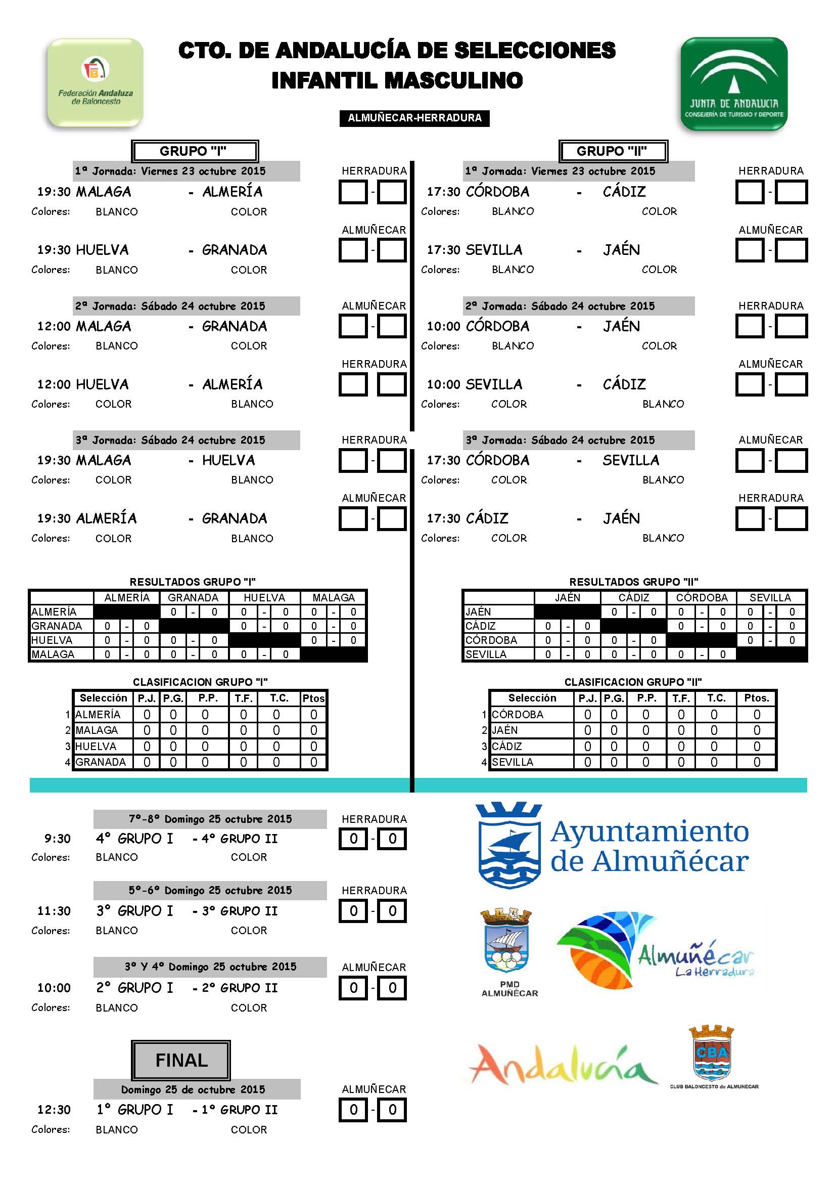 Antonio Molina Caracuel, Pablo Agudo Laso, Carlos Ramos Aranda, Iván Casas Garrido, Pablo Sánchez Infantes, Francisco Llobregat Jiménez y Julio Vera Espejo intentarán junto con sus compañeros obtener la mejor clasificación posible en un campeonato que comienza en viernes con un encuentro ante la potente selección de Sevilla. El sábado disputarán dos encuentros, por la mañana ante Córdoba y por la tarde ante Cádiz. En función de los resultados obtenidos, el domingo disputarán el último encuentro para decidir la clasificación final.