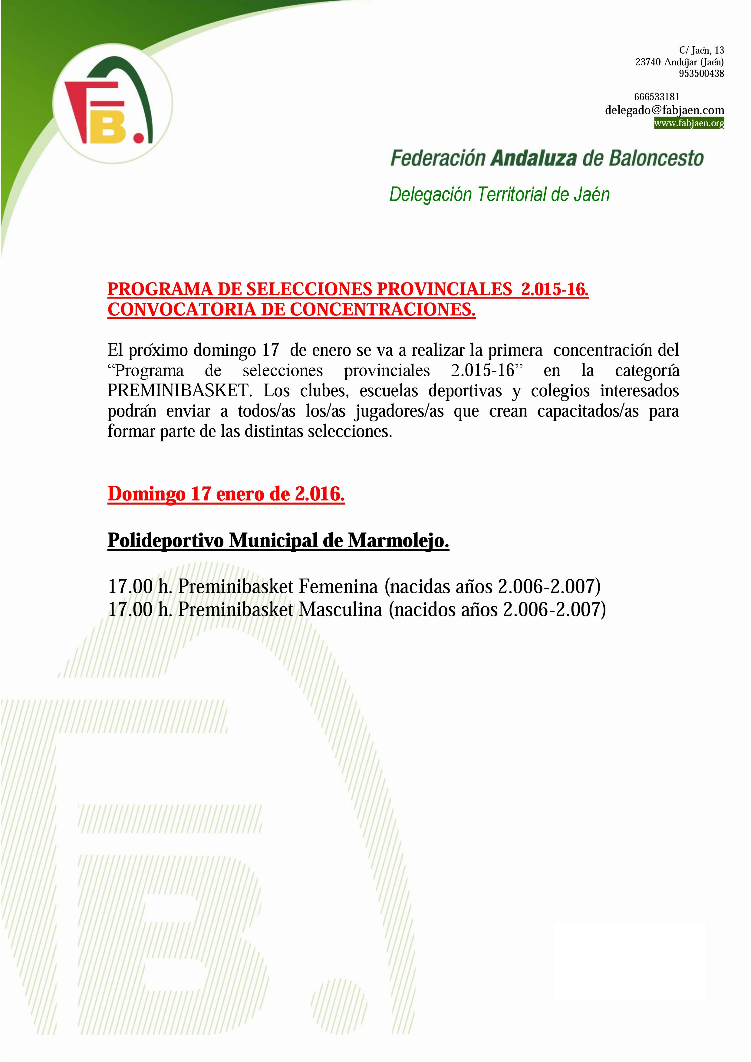 Programa de Selecciones ProvincialesBABY MAS y FEM 17/01/16 |