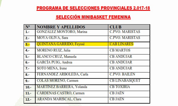 El comité técnico de la Delegación Territorial de Jaén de la FAB ha hecho públicas las convocatorias del Programa de Selecciones Provinciales para el próximo fin de semana. Esta semana se ha cerrado la selección infantil masculina en la que contaremos en ella con Felipe Utrera y la mini femenina en la que contamos con Feysse Quintana. ¡Enhorabuena a ambos!