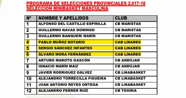 El comité técnico de la Delegación Territorial de Jaén de la FAB ha hecho públicas las convocatorias del Programa de Selecciones Provinciales para el próximo fin de semana. En categoría minibasket femenina contaremos con una jugadora más de nuestro club, Paula Moya Nava que se incorpora a la selección con el desgraciado motivo de la lesión de una compañera.