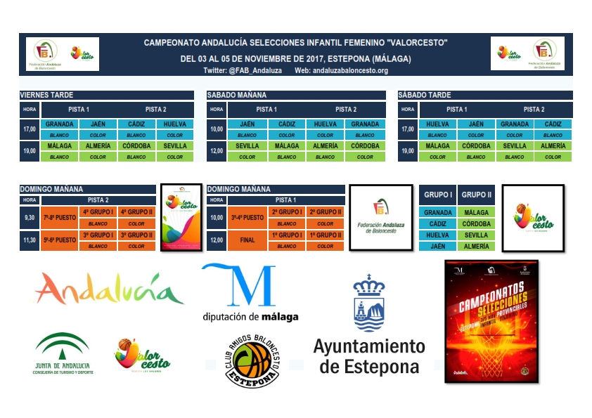 El próximo fin de semana continúa la disputa de los Campeonatos de Andalucía de Selecciones Provinciales. En esta ocasión se trata de la categoría infantil femenina, que se celebra en la localidad malagueña de Estepona y en sus instalaciones del Pabellón La Lobilla.