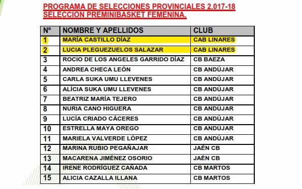CAB Linares estará representado en la selección femenina por las jugadoras María Castillo y Lucía Pleguezuelos. Les deseamos mucha suerte a ambas en lo que queda de preparación y en el campeonato.