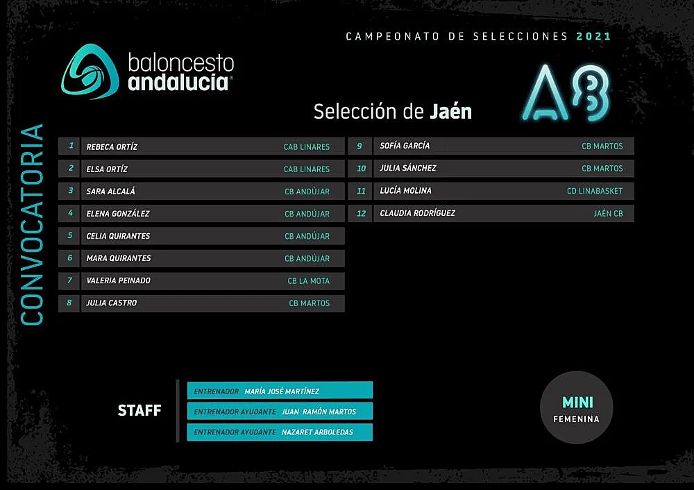 El Área Técnica de la Delegación Provincial de la FAB ha hecho públicos los listados de deportistas seleccionados para representar a Jaén en los Campeonatos de Andalucía de Selecciones Provinciales en las categorías minibasket, tanto masculina como femenina.
