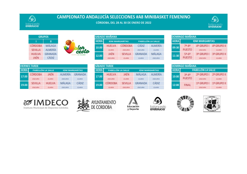 El combinado provincial está encuadrado dentro del grupo I junto con las delegaciones de Córdoba, Sevilla y Huelva. Las nuestras debutarán en la tarde del viernes ante las anfitrionas cordobesas. En la mañana del sábado competirán con Sevilla y en la jornada de tarde finalizarán la fase de grupos jugando ante Huelva. El domingo, en función de la clasificación en la fase de grupos, disputarán el partido para obtener el puesto final en el campeonato.