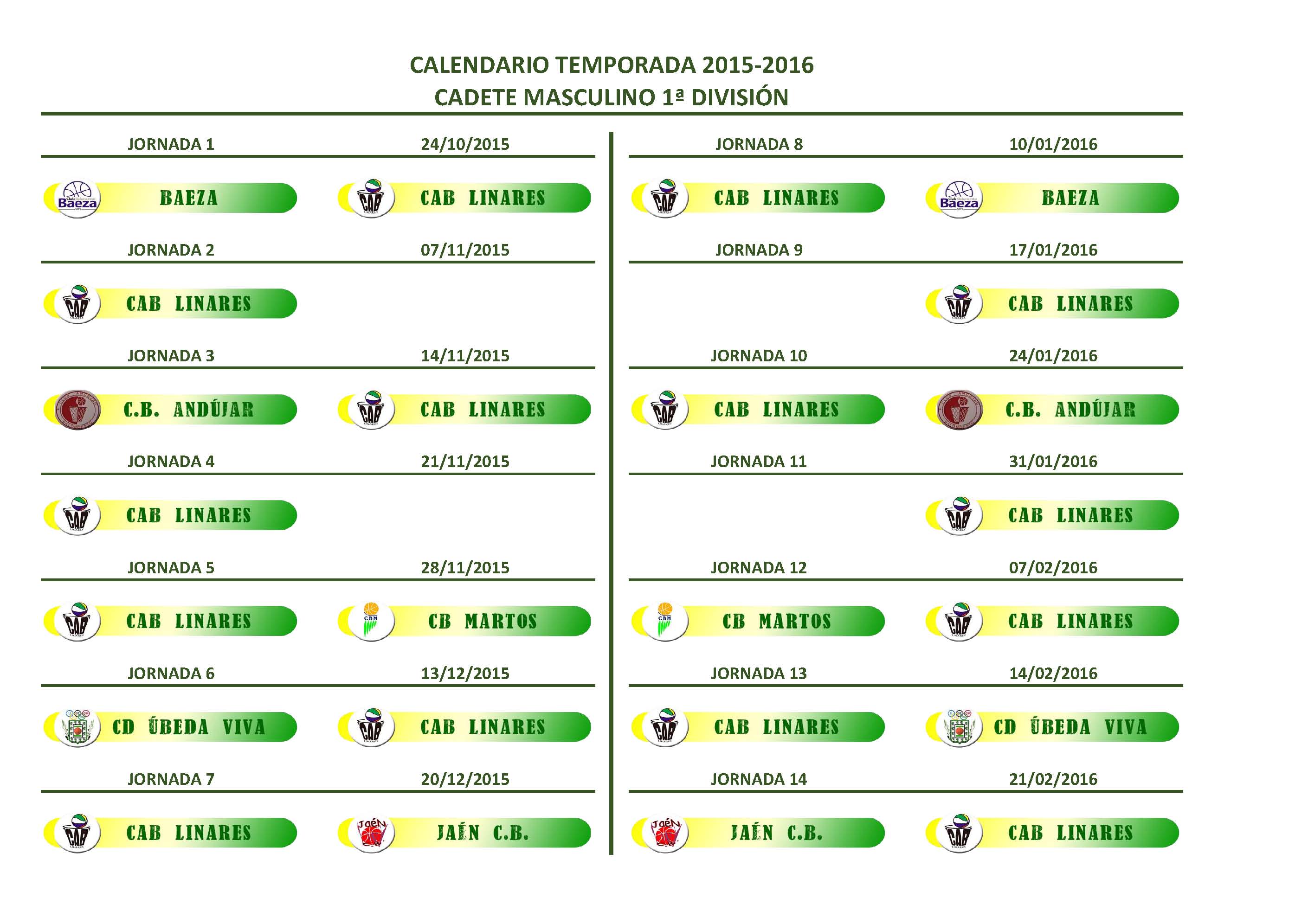 Calendario Cadete Masculino A 2015/2016 webmaster Categoría: Calendarios 2015/2016 11 Octubre 2015 Visitas: 3838