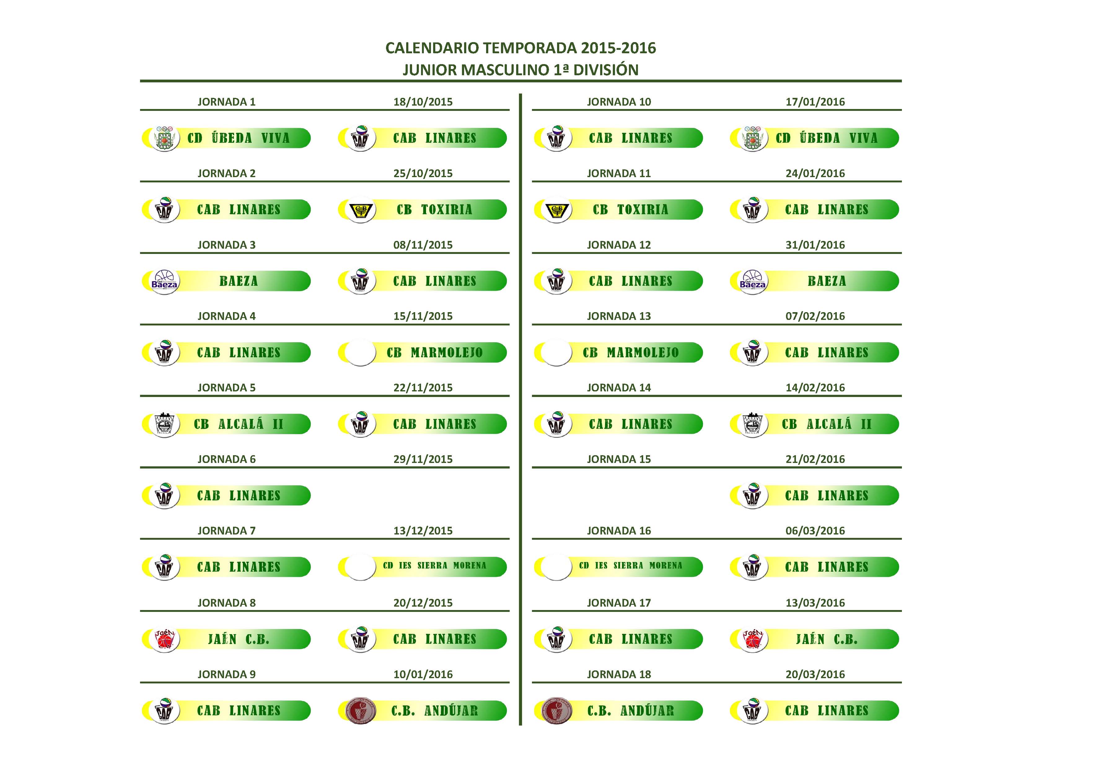 Calendario Junior Masculino 2015/2016 webmaster Categoría: Calendarios 2015/2016 11 Octubre 2015 Visitas: 3696