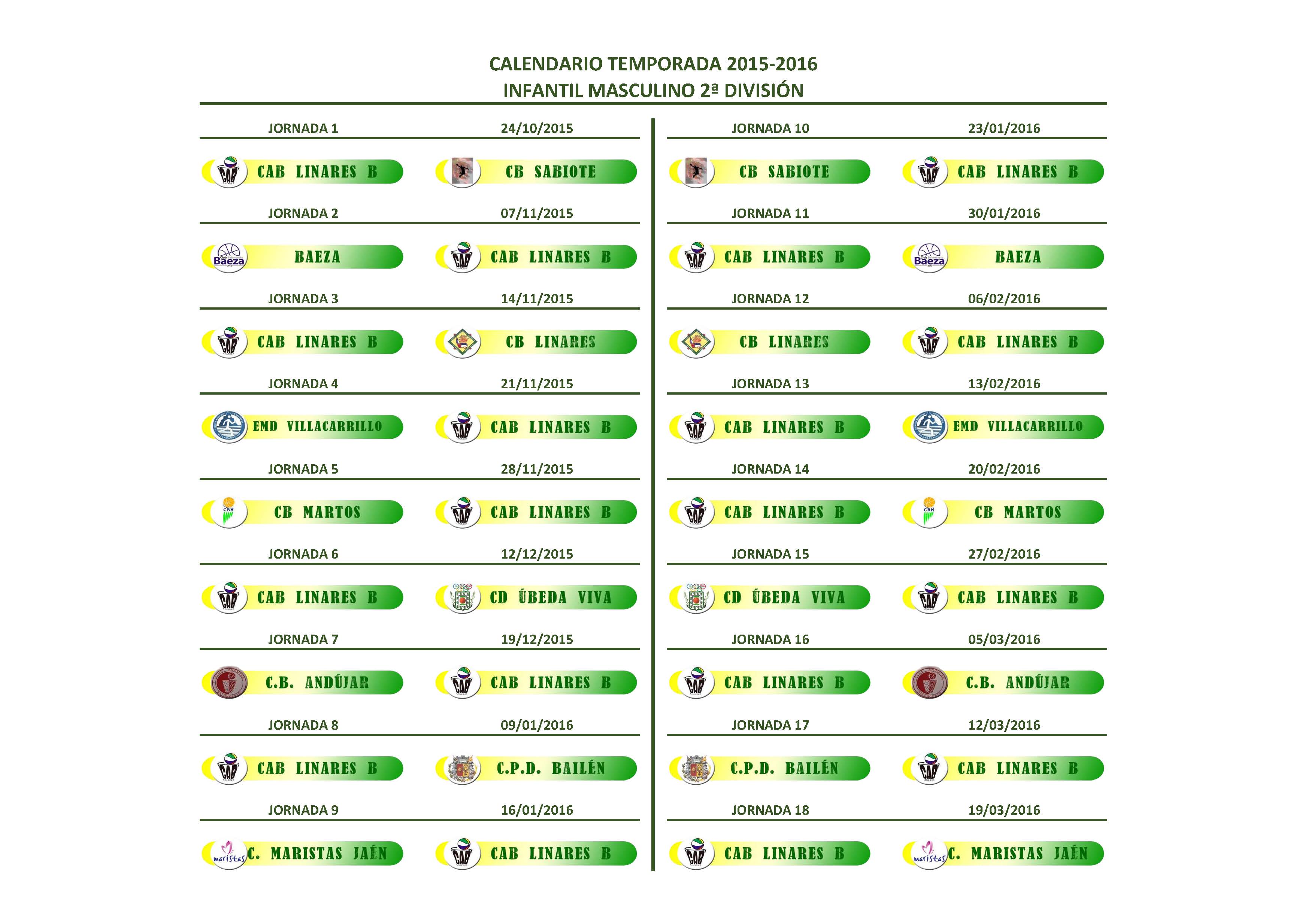 Calendario Infantil Masculino A 2015/2016 webmaster Categoría: Calendarios 2015/2016 11 Octubre 2015 Visitas: 4615