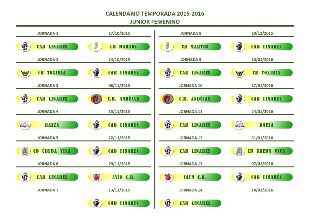 Calendario Junior Femenino 2015/2016 webmaster Categoría: Calendarios 2015/2016 12 Octubre 2015 Visitas: 6088