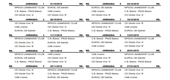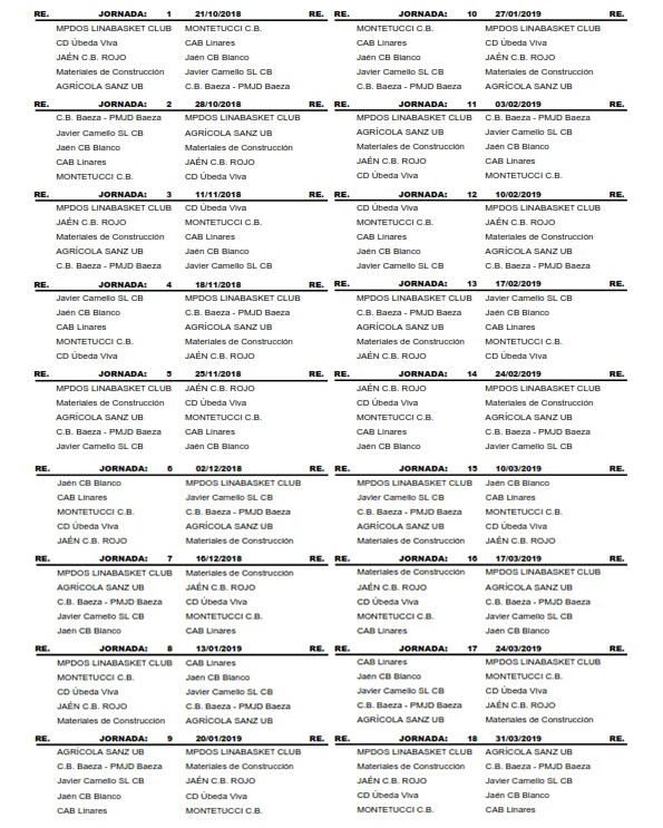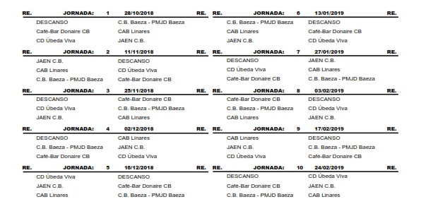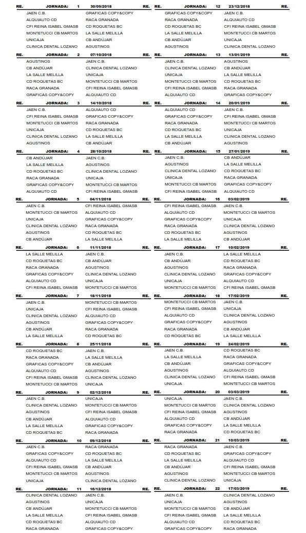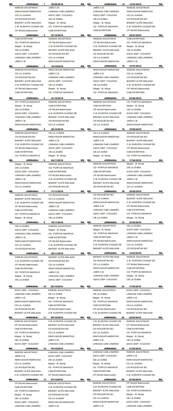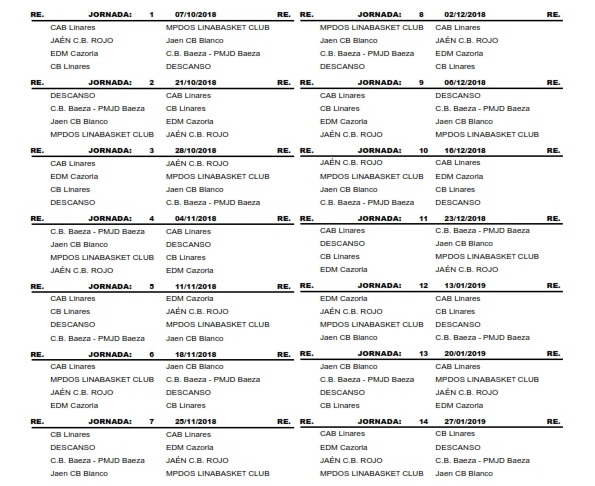 Calendario Junior Femenino Temporada 2018/2019