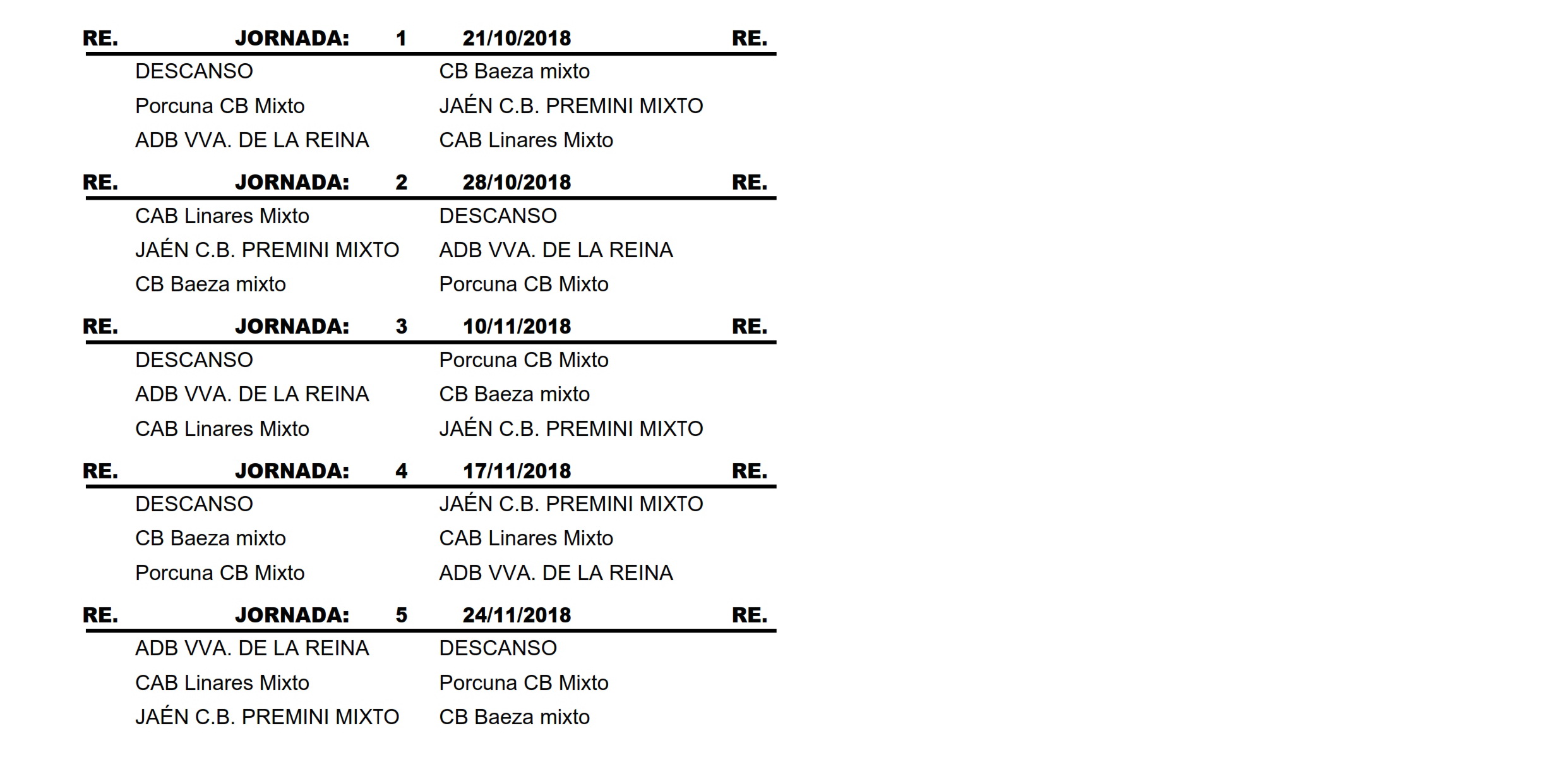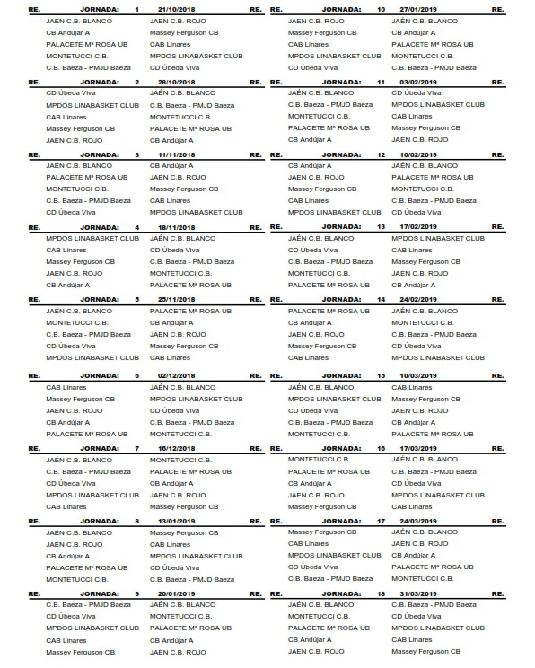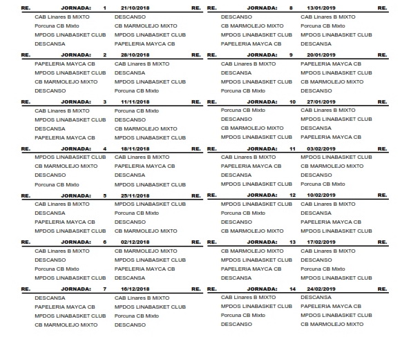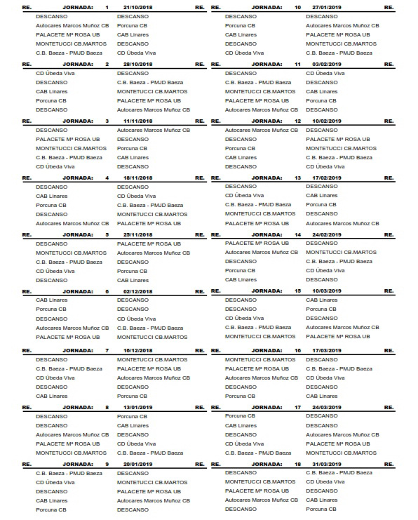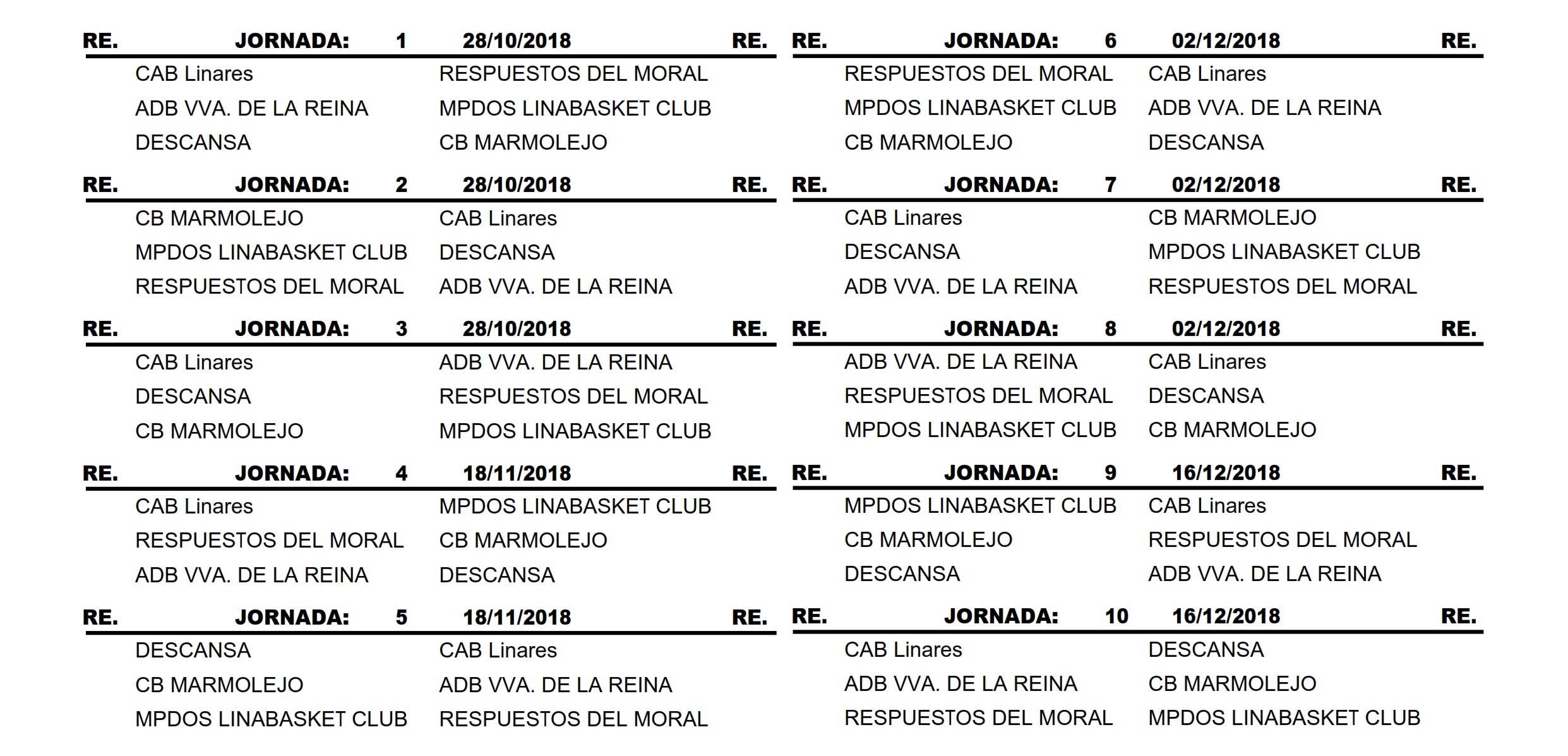 Calendario Copa Diputación Minibasket Femenino 2018/2019
